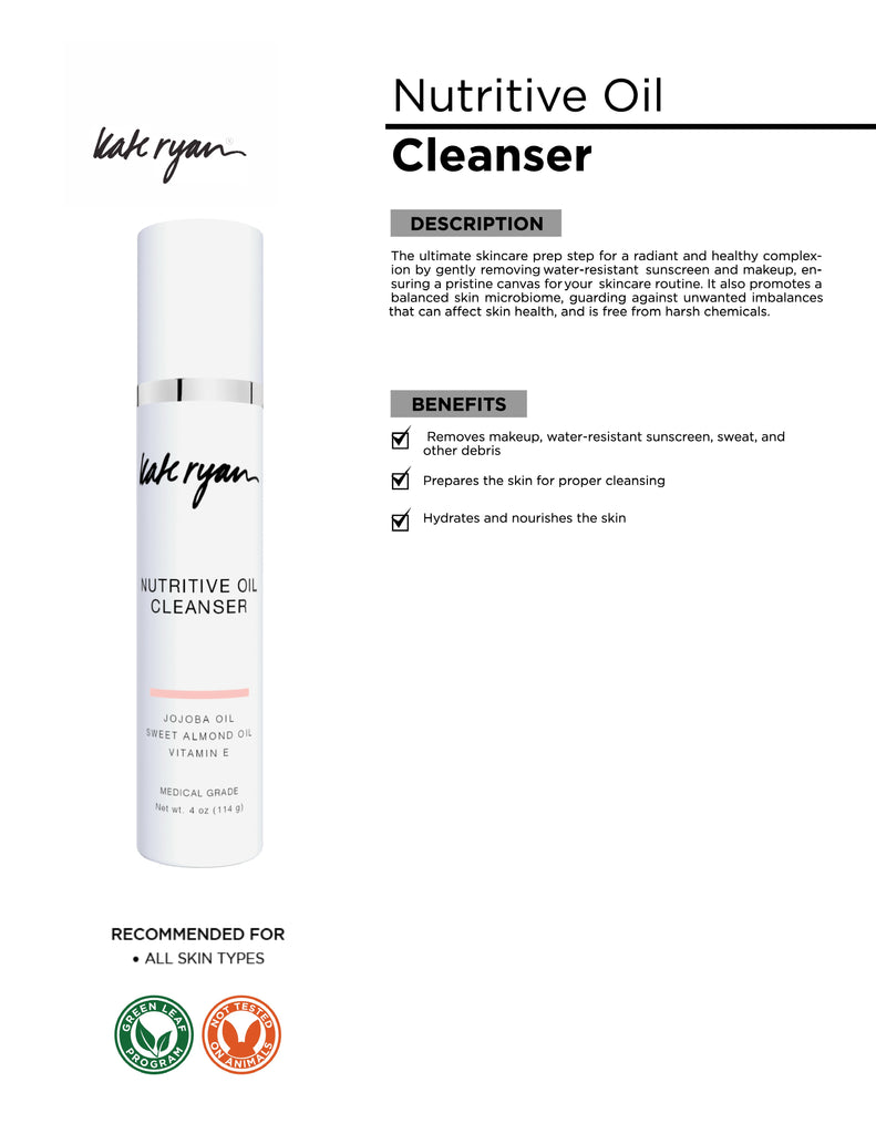 Unlike many soaps or cream cleansers, Nutritive Oil Cleanser is formulated to break up pore-clogging sebum, debris, and makeup, without disrupting the pH balance of your skin. Rinse away the cleanser, and your skin is clean, clear of buildup and makeup, yet calm and without the tight feeling that occurs when skin has been stripped of its protective pH balanced barrier. This natural balance is essential for preventing premature aging and damage.
